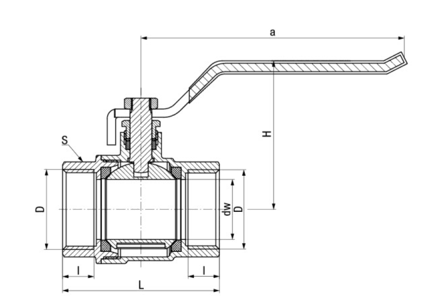 Kugelhahn mit Stopfbuchse, mit Stahlhebel, Ausführung Mutter–Mutter