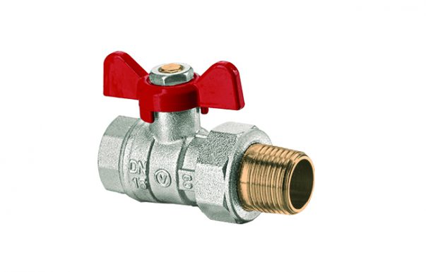 Kugelhahn, voller Durchgang, mit Drossel, mit Halbverschraubung, mit Alu-Flügelgriff (MAI)