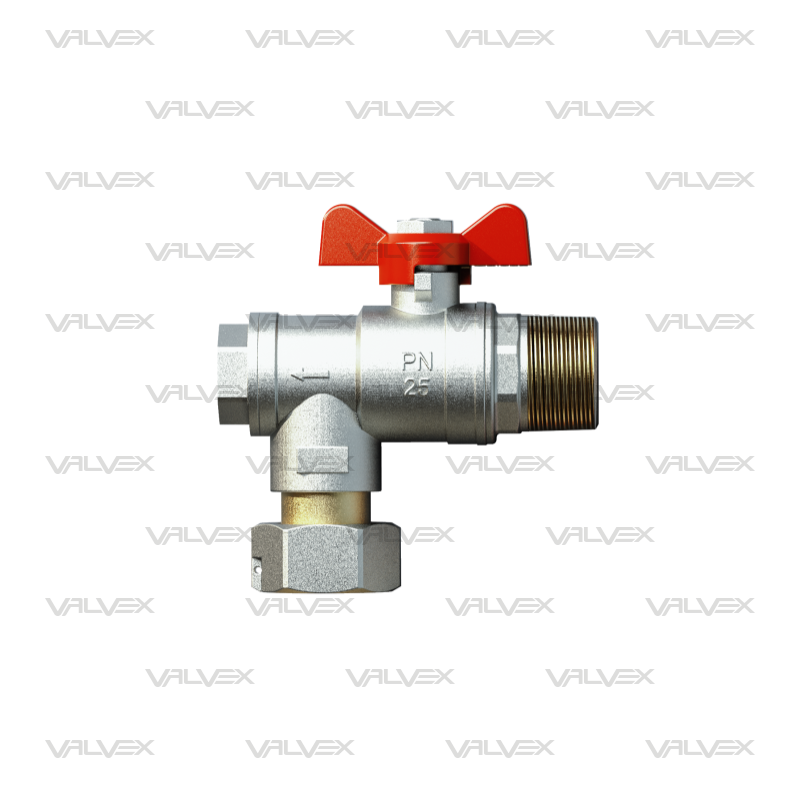 Angled ball valve with swivel nut