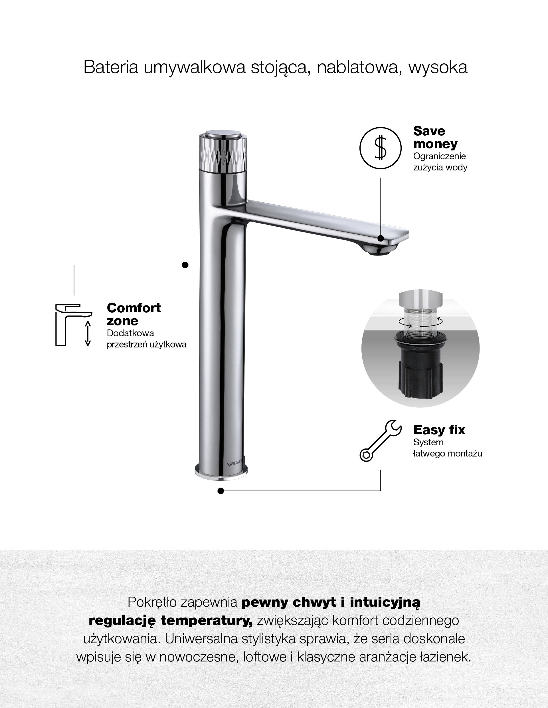 Bateria umywalkowa stojąca, nablatowa, wysoka