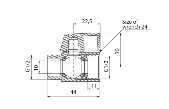 Kurek kulowy chromowany, wersja nakrętno-wkrętna 1/2″
