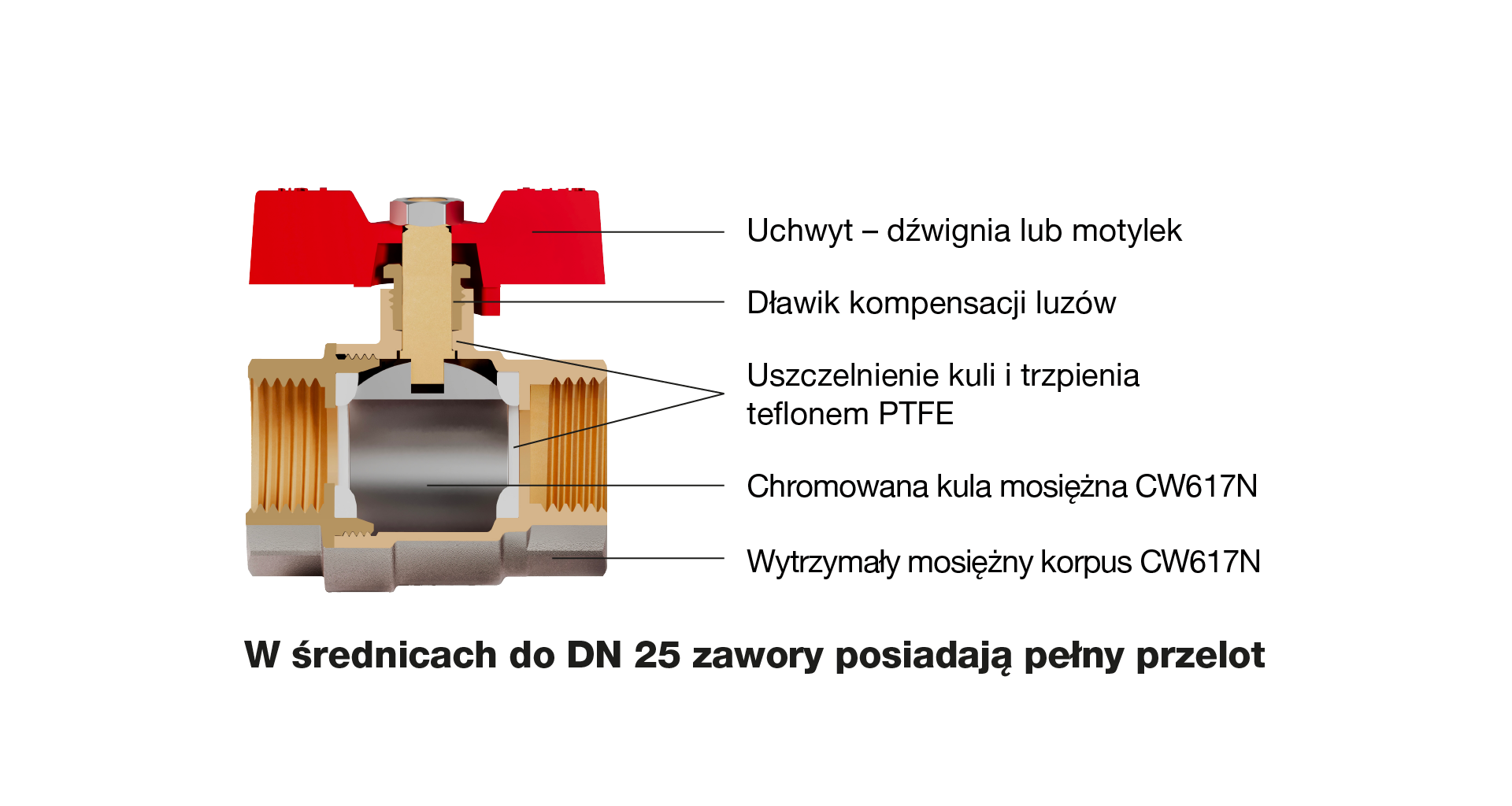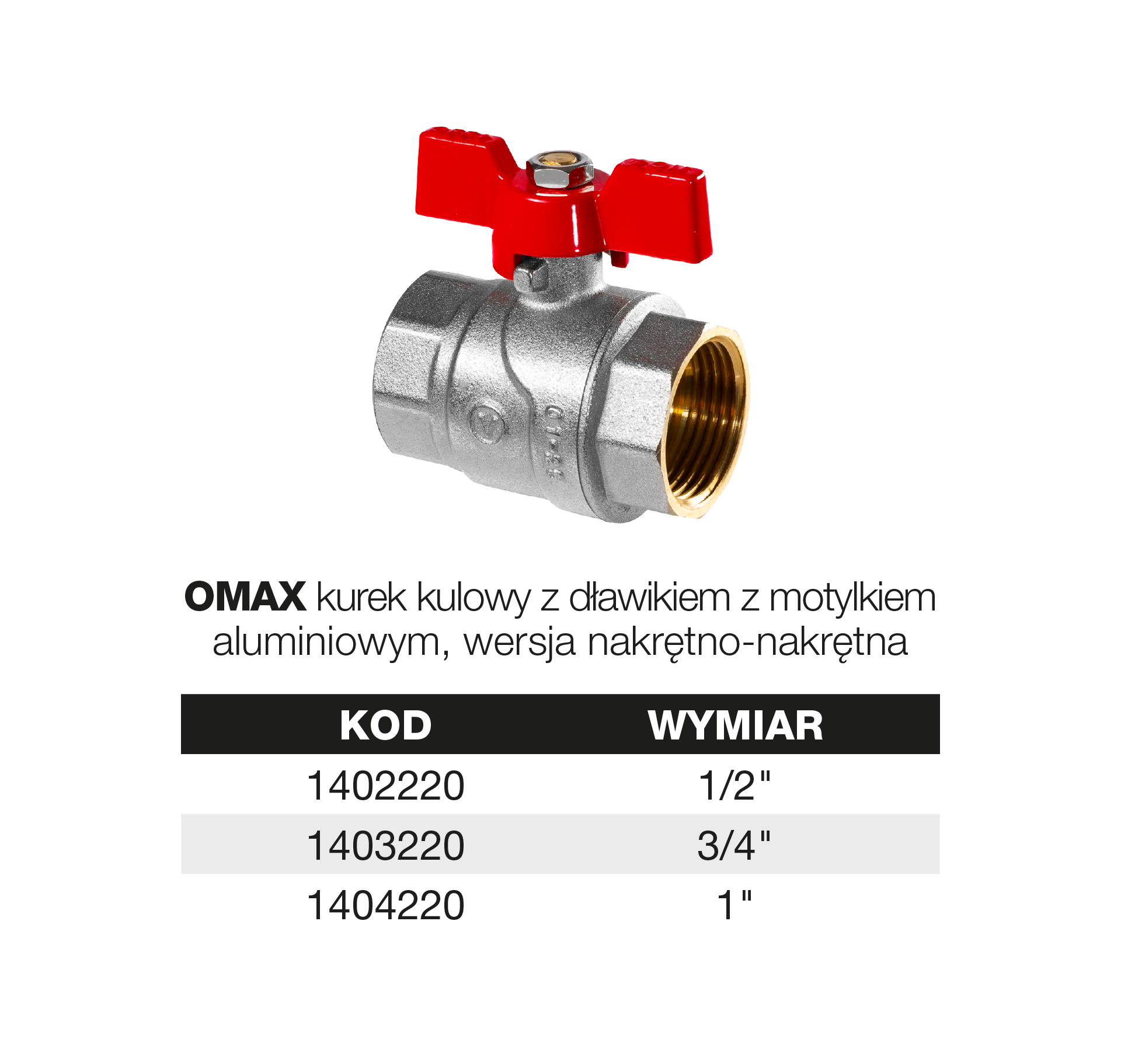 Kurek kulowy z dławikiem z motylkiem aluminiowym, wersja nakrętno-nakrętna