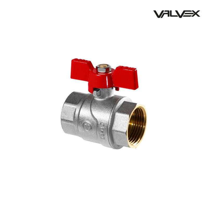 Robinet cu bilă cu presgarnitură, cu fluture din aluminiu, versiune piuliță–piuliță