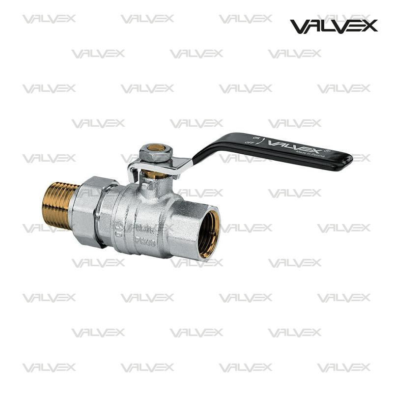 Robinet cu bilă cu trecere totală, cu funcție de reglare (drosel) și racord tip semi-olandez, cu manetă din oțel